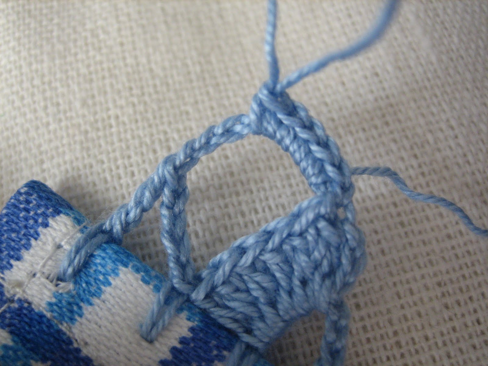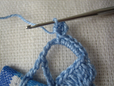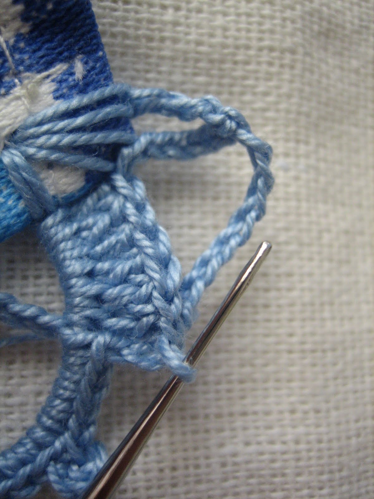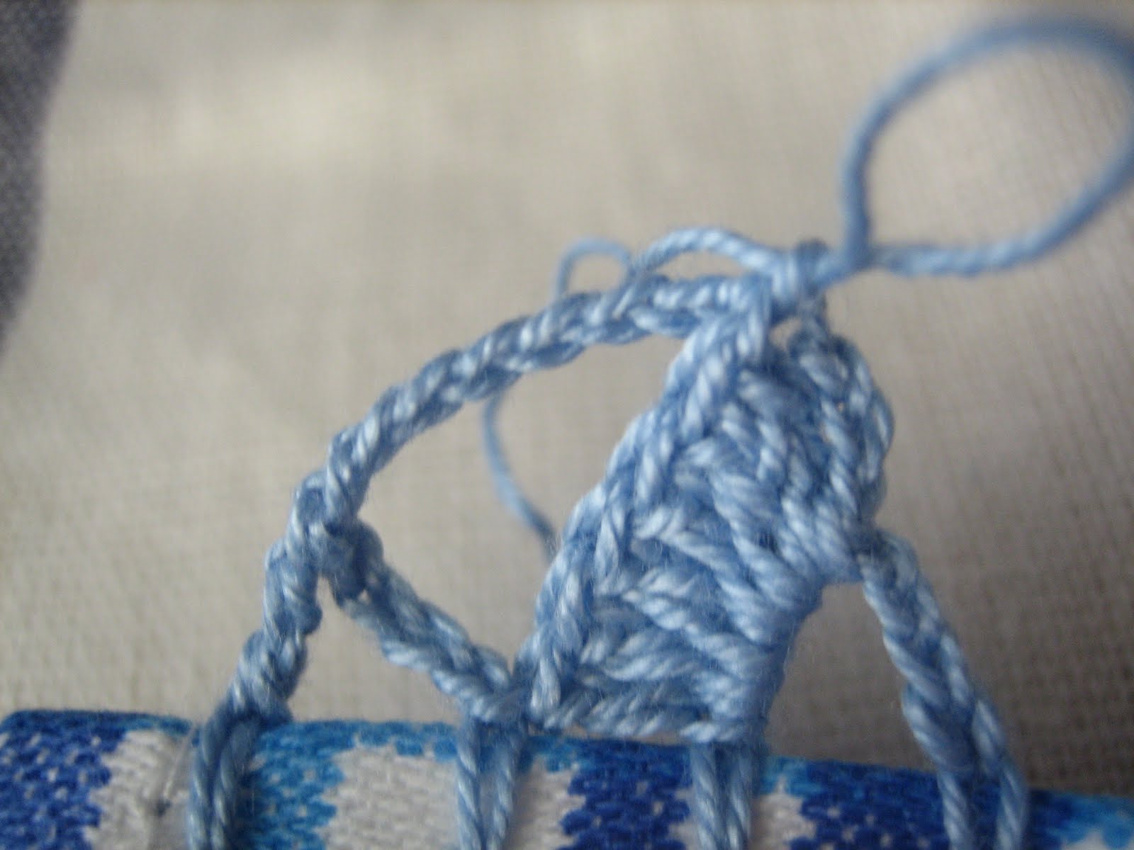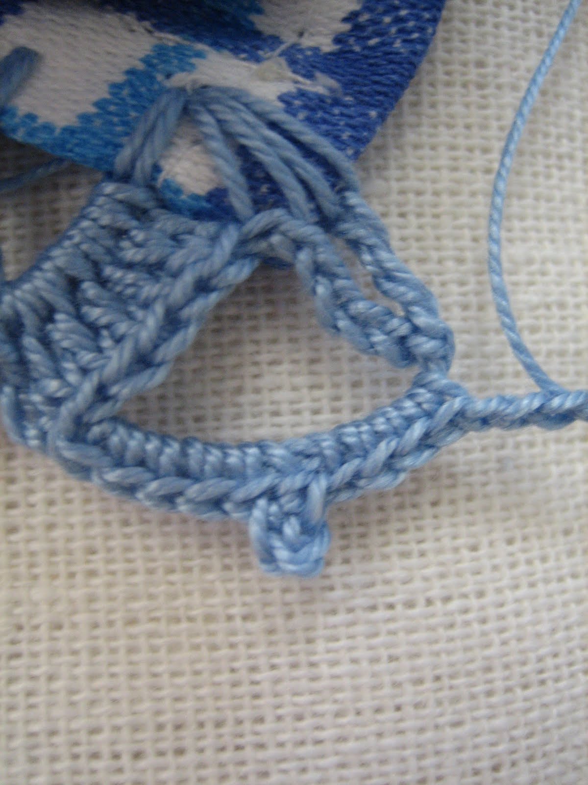 8 correntinhas e pregar no primeiro ponto alto anterior...