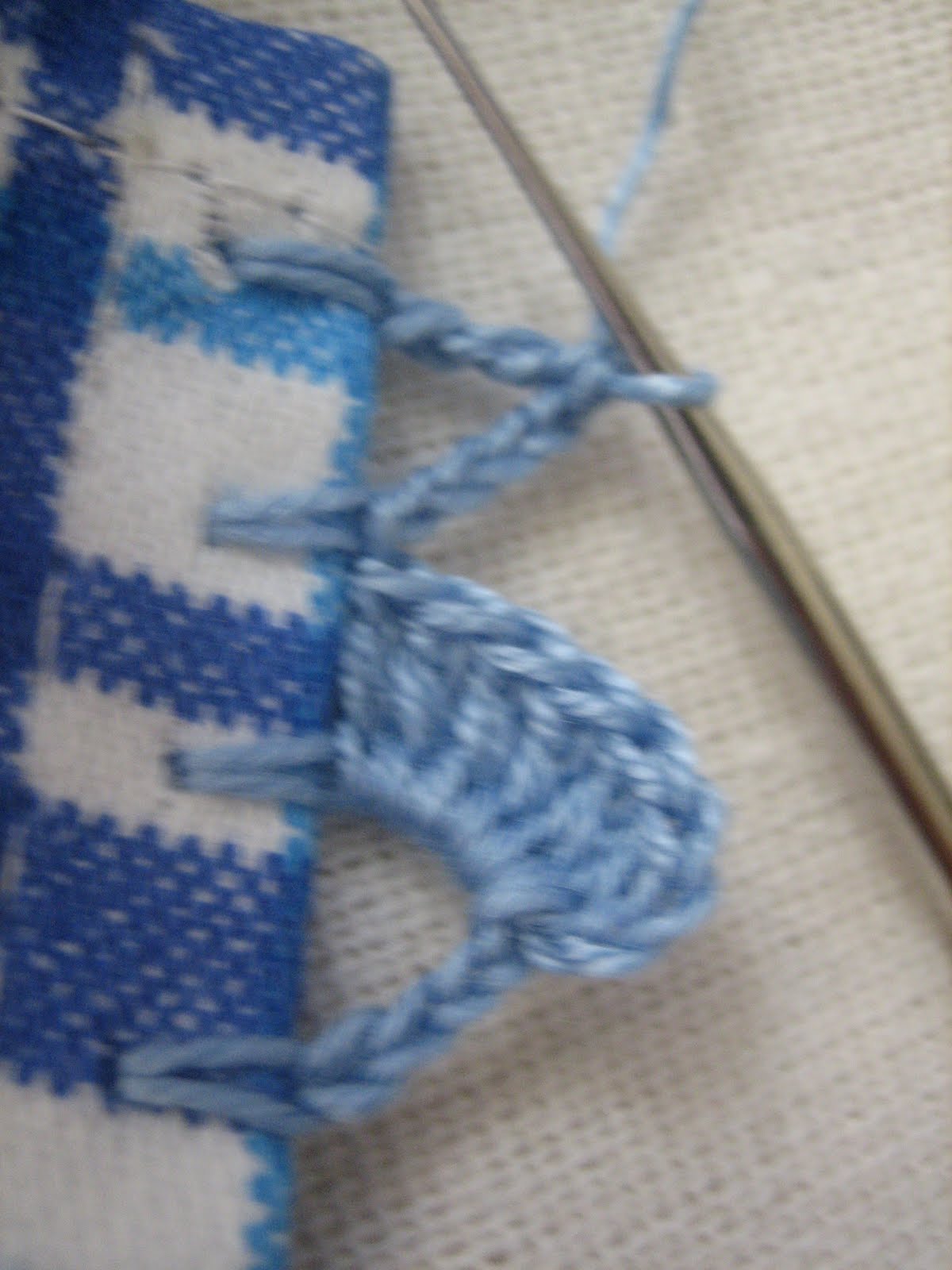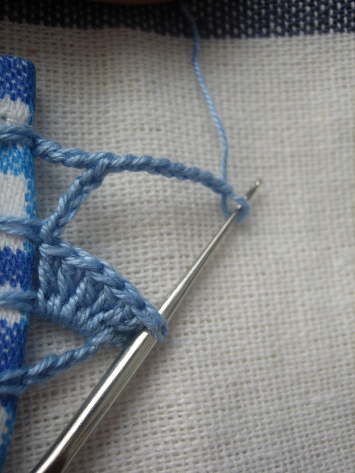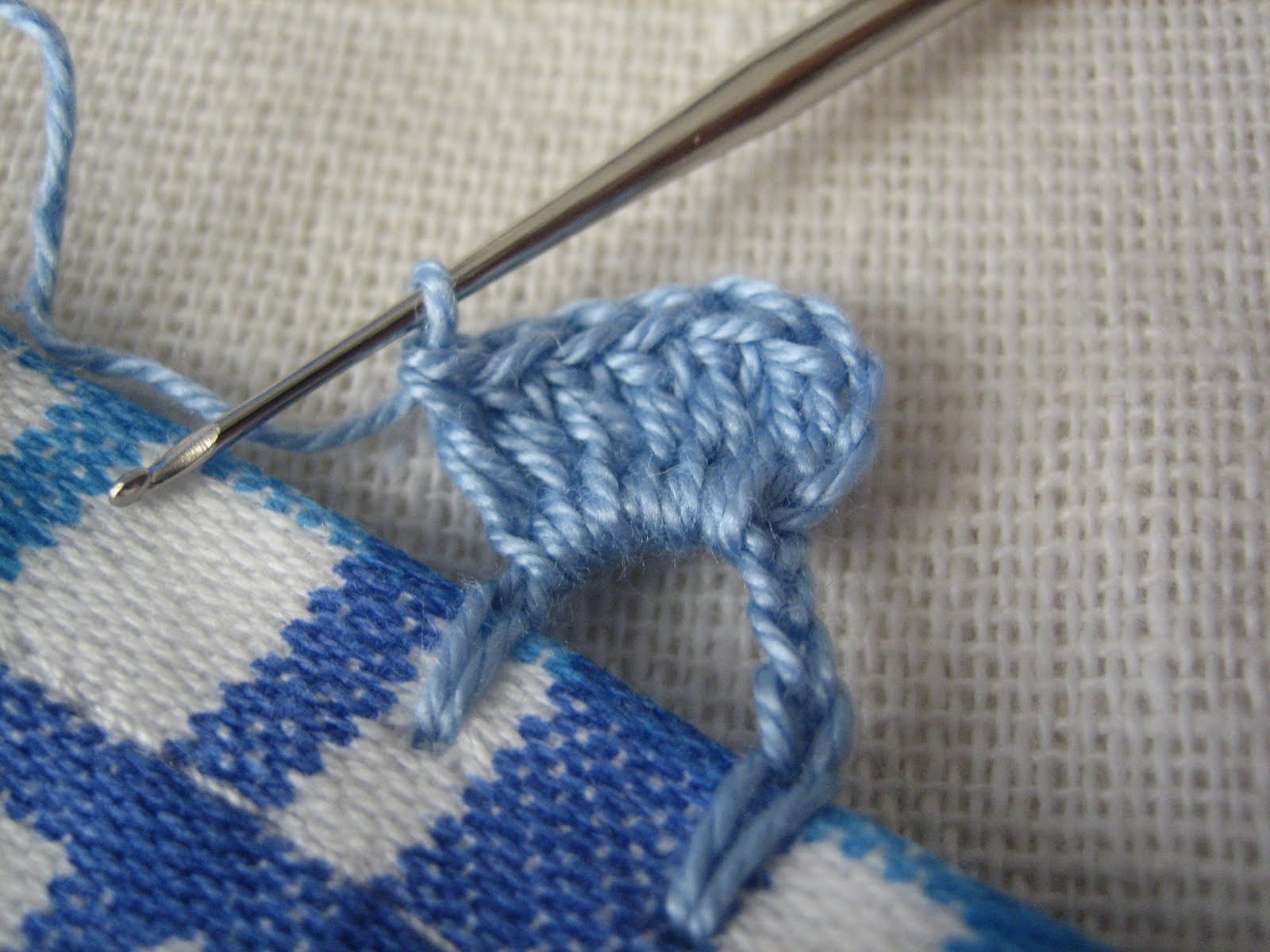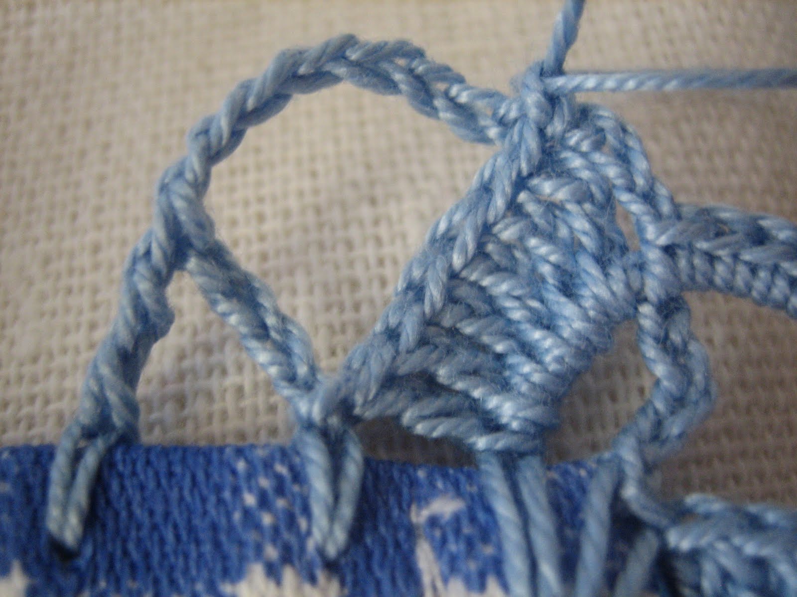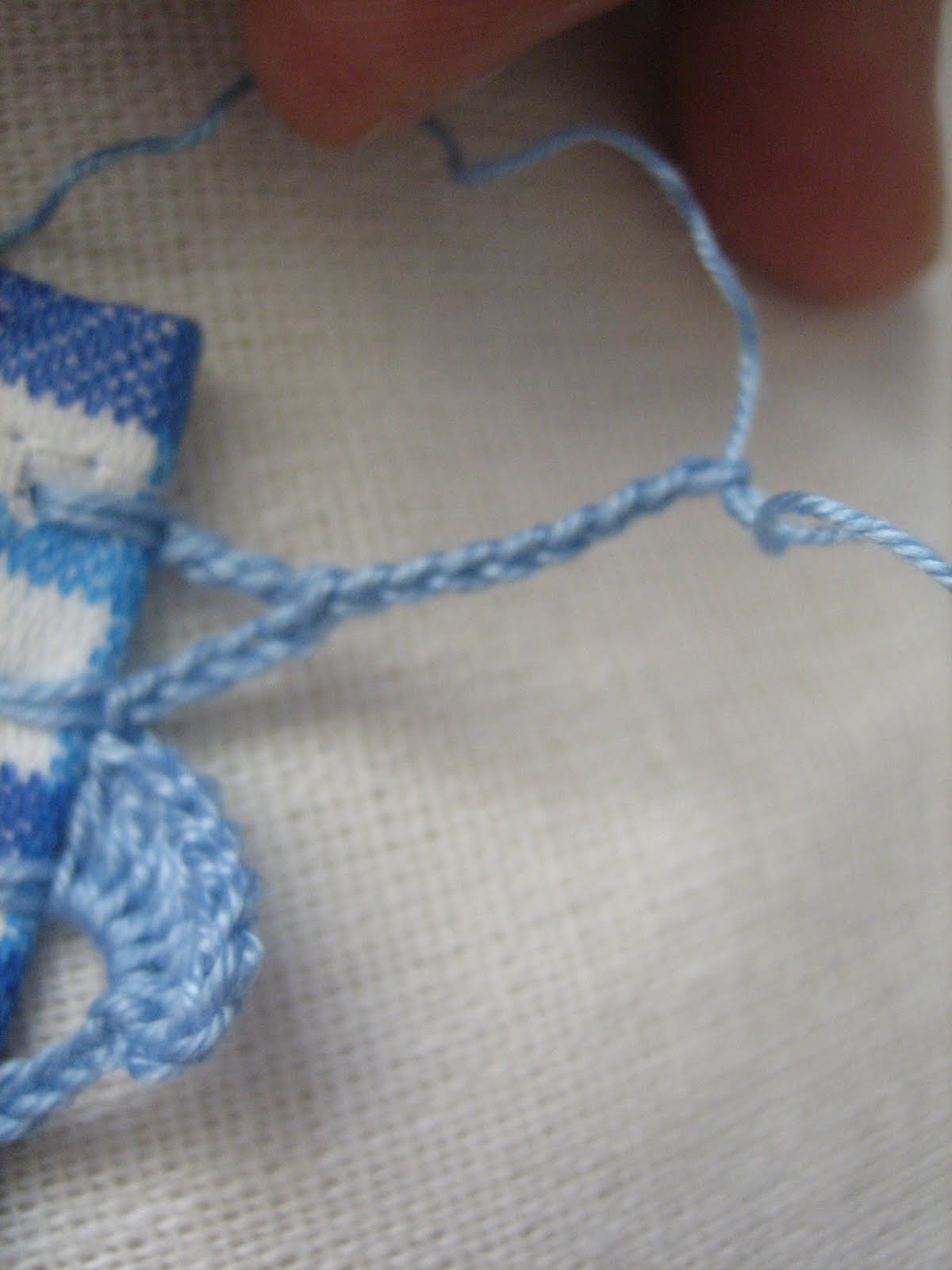 8 correntinhas e pregar no primeiro ponto alto anterior...